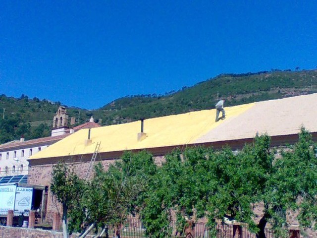 Aislamiento en Cubierta inclinada con teja practicable. En algunas de las soluciones, como la cubierta invertida. La cubierta ya estaba aislada con 8 cm de una antigua lana de roca entre las. Rehabilitación de la fachada con revestimiento interior.